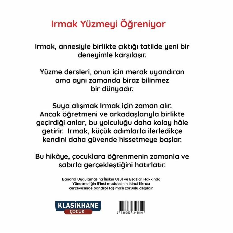 Irmak Yüzmeyi Öğreniyor’da Irmak, annesiyle çıktığı tatilde yeni bir deneyimle tanışıyor. Yüzme dersleri onun için hem merak uyandırıcı hem de biraz bilinmez bir dünya.